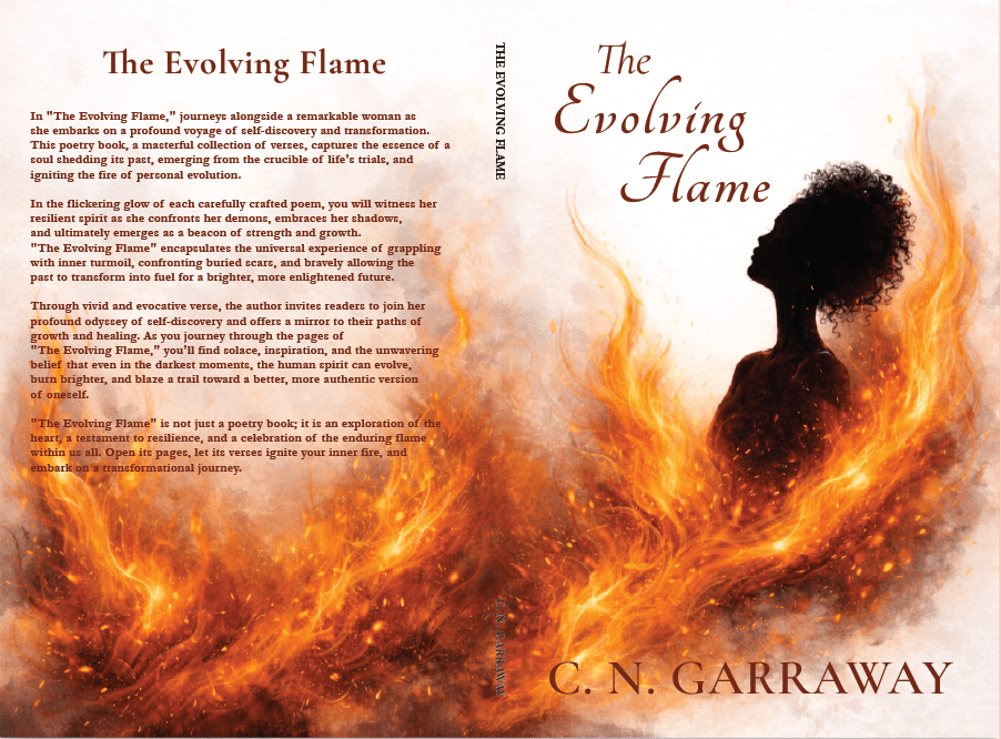 I knew I wanted flames in my design somewhere. I liked the dark background because I thought it matched the mood of some of my poems; however, it didn’t capture the overall tone of the book.